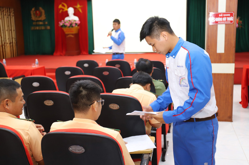 Lý thuyết: Các cán bộ chiến sỹ được đào tạo về dự đoán mối nguy, nguyên lý phản xạ với những tình huống nguy hiểm và khoảng cách an toàn khi di chuyển; cách kiểm tra xe, lên xuống xe an toàn, tư thế lái xe, điểm mù và kiểm soát không gian xe; cách ghép xe liên hoàn và thực hành cảm nhận không gian xe.