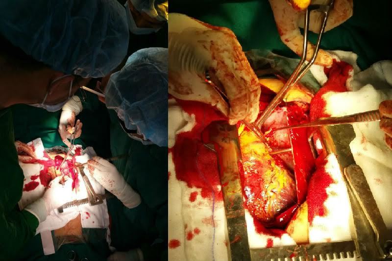 Tại phòng mổ, khi mở ngực, cưa xương ức, ê-kíp bác sĩ máu nhận thấy màng ngoài tim bệnh nhân căng phồng, áp lực cao và tiến hành xẻ màng tim để giải áp.