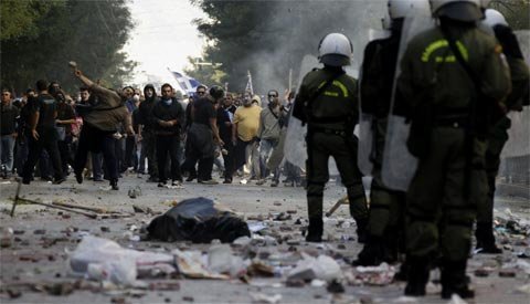 Bạo lực đã nổ ra giữa các cuộc biểu tình lớn ở Hy Lạp khi các nghiệp đoàn phát động 2 ngày tổng đình công trước cuộc bỏ phiếu quyết định loạt biện pháp khắc khổ mới trong nỗ lực tránh cho nước này sụp đổ.