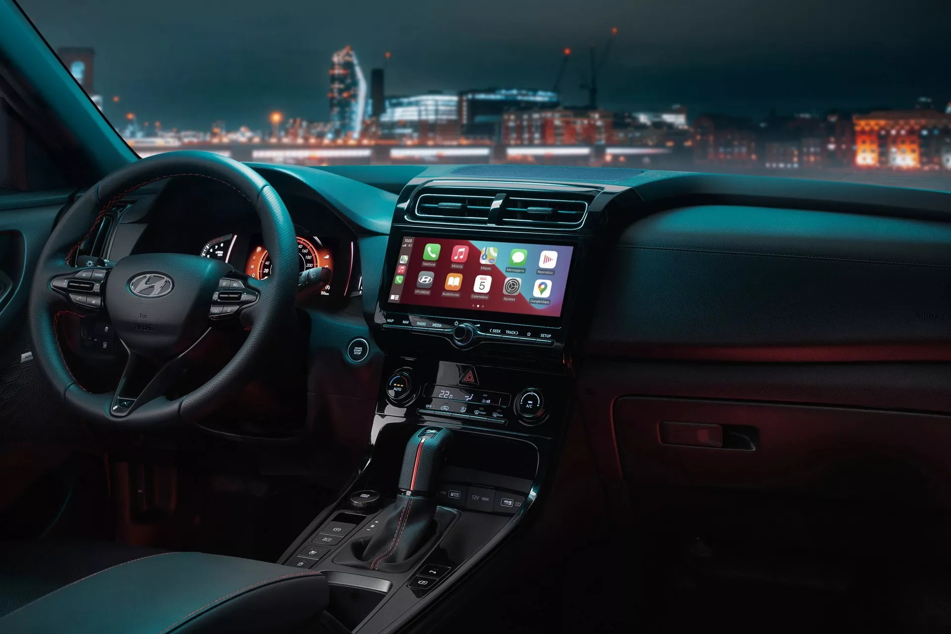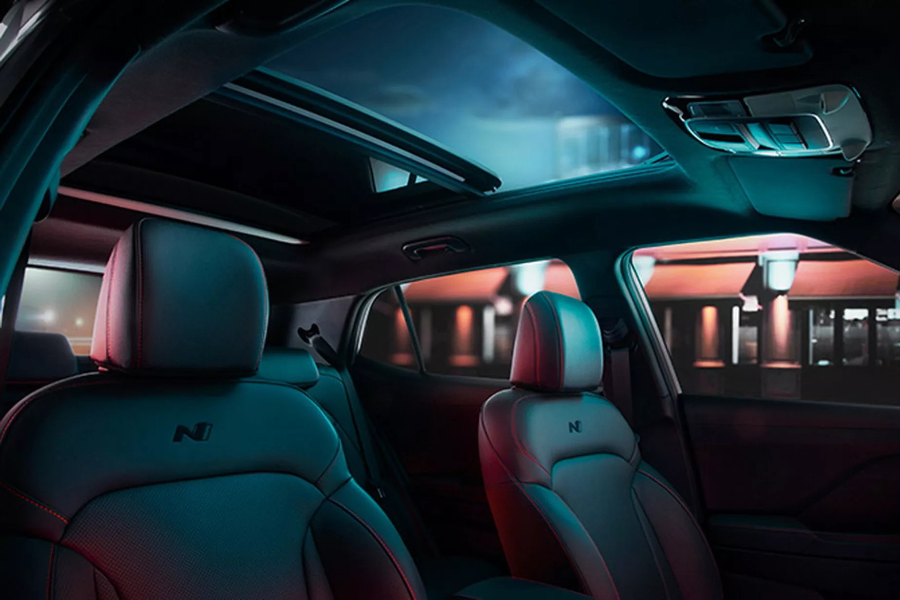 Trang bị nổi bật của xe gồm hệ thống âm thanh cao cấp Bose 8 loa, ghế ngồi bọc màu đen phối đường chỉ khâu màu đỏ, các điểm nhấn màu đen bóng, huy hiệu N trên vô-lăng/cần số, cửa sổ trời toàn cảnh,.v.v… Ngoài ra còn có điều hòa tự động, làm mát ghế lái, sáu túi khí và hệ thống an toàn Hyundai SmartSense ADAS.