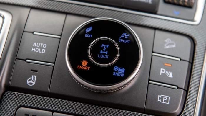 Cần số của SantaFe 2021 đã bị thay thế bằng các nút bấm. Một núm xoay chuyển các chế độ vận hành xuất hiện bên cạnh có các chế độ gồm cát, tuyết và bùn, tiết kiệm, thể thao, thoải mái và thông minh.