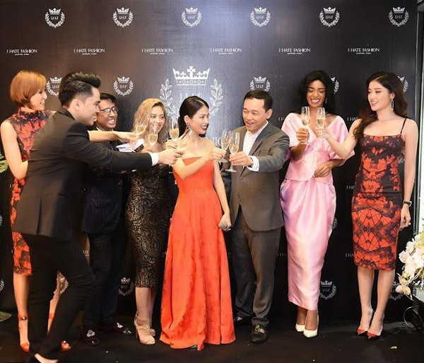 Bà Tuyết Anh, êkíp của IHF và siêu mẫu Phương Mai, MC Thái Dũng, Á hậu Huyền My, Phu nhân đại sứ Haiti cùng nâng ly chúc mừng sự kiện.