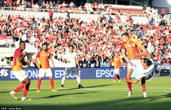 Không cần nhiều thời gian thích nghi, Ibrahimovic ngay lập tức ghi dấu ấn đậm nét trong buổi trình làng màu áo mới, với pha ngả bàn đèn mở tỉ số đẹp miễn chê. Dù Galatasaray vùng lên mạnh mẽ và liên tiếp có 2 bàn thắng sau đó, nhưng hiệp hai hoàn toàn là của MU.