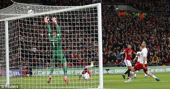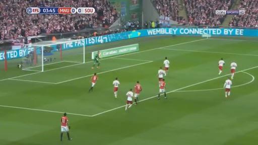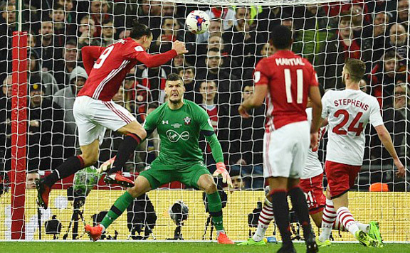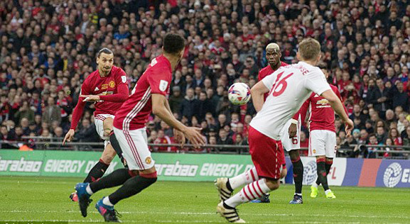 MU được hưởng quả đá phạt góc sút rộng bên ngoài vòng cấm. Ibrahimovic bức lên thực hiện cú sút sấm sét cháy lưới Southampton, mở tỷ số trận chung kết.