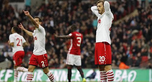 Hàng thủ Quỷ đỏ thi đấu khá lỏng lẻo nên cuối cùng cũng bị trả giá. Ward Prowse thoát xuống sát đường biên ngang rồi chuyền dọn cỗ để Gabbiadini đệm cận thành rút ngắn tỷ số xuống còn 1-2.