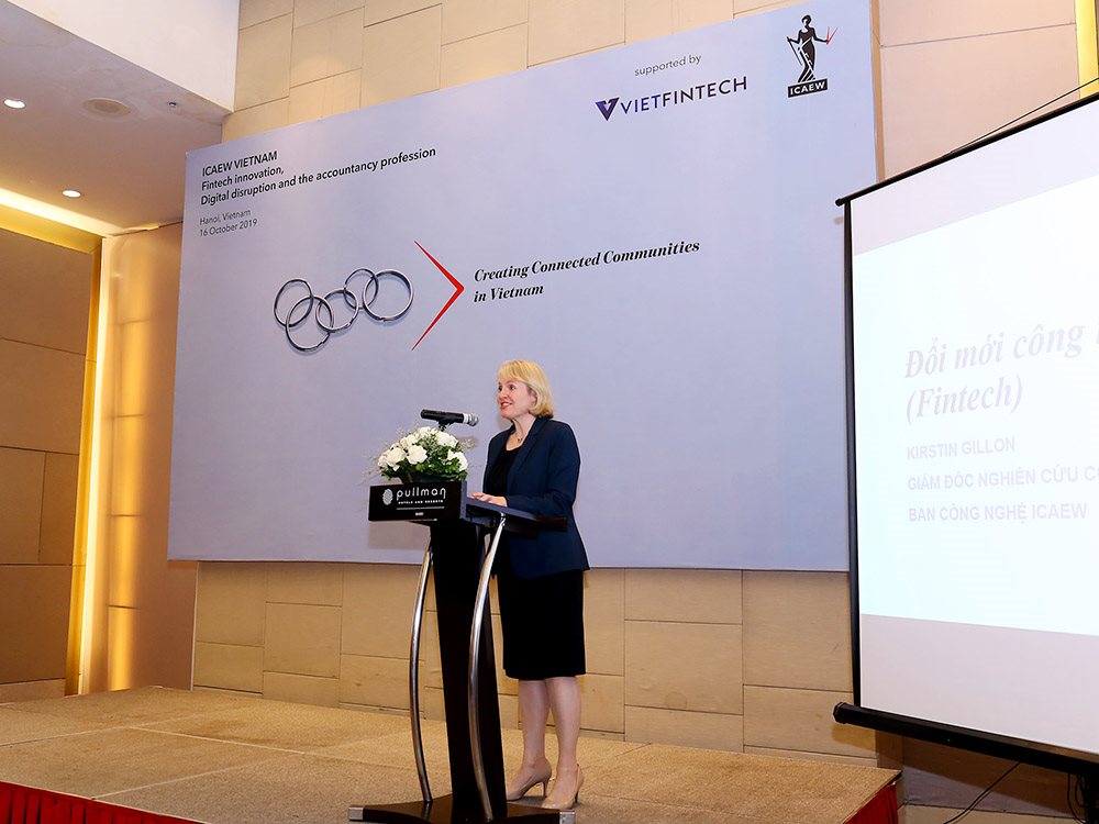 Tại hội thảo, nhận định các công ty Fintech đóng vai trò quan trọng trong việc đổi mới dịch vụ tài chính với sự tác động lên các lĩnh vực ngân hàng số, thanh toán di động, bảo hiểm, tiền điện tử, robot tư vấn…, bà Kristin Gillon, Giám đốc nghiên cứu công nghệ toàn cầu của ICAEW cho biết, Fintech thay đổi cách tiếp cận môi trường truyền thống sang môi trường điện tử. Chúng ta đang bắt đầu không còn sử dụng tiền mặt hay thẻ để chi trả mà xu hướng thanh toán qua điện thoại cũng như các ứng dụng trên điện thoại phát triển rất nhanh. Chúng ta cũng đã thấy sự lên ngôi của blockchain khi có lợi thế về việc hạn chế các kết nối trung gian, giảm chi phí và nhanh chóng hơn.