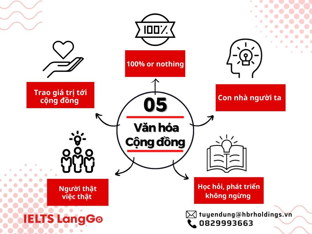 Văn hóa “100% or nothing” - hoàn thành công việc với 100% sự nỗ lực hoặc đừng làm gì cả là “nền móng” vững chắc để IELTS LangGo xây dựng cộng đồng hơn 100 giảng viên gắn kết chặt chẽ với tập thể. Họ không chỉ có chuyên môn nghiệp vụ vững vàng, mà còn trở thành người truyền cảm hứng, lan tỏa lối sống tích cực cho các học viên.