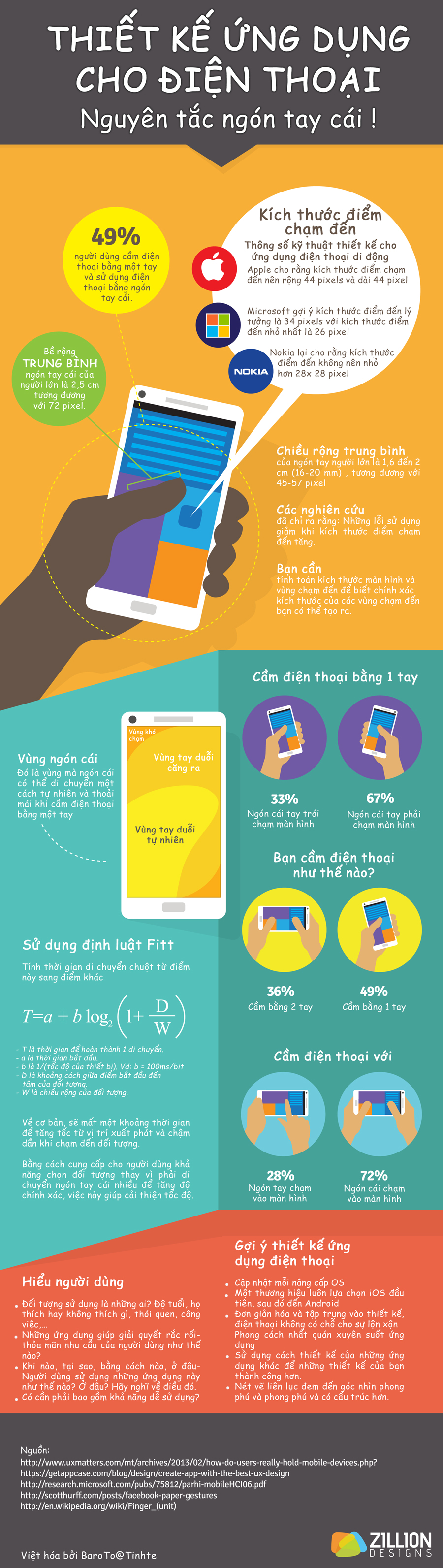 Thiết kế những ứng dụng cho điện thoại di động cũng đòi hỏi nhiều kĩ thuật, tính toán chi tiết để chiếc điện thoại trở nên hữu dụng và sử dụng một cách dễ dàng, thuận tiện nhất. Dựa vào thói quen sử dụng điện thoại và một số đặc điểm bàn tay con người, Infographic dưới đây đưa ra một số gợi ý cho bạn khi thiết kế ứng dụng cho điện thoại di động.