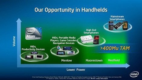 Hiện tại, thị trường smartphone chưa có sự hiện diện của Intel, nhưng Otellini tin rằng một smartphone dựa trên chip mới của hãng sẽ được tung ra thị trường trong quý đầu tiên của năm 2012 tới đây. Nền tảng Medfield bao gồm bộ vi xử lí Atom điện áp thấp. Smartphone với chip Medfield mới được cho là sẽ xuất hiện trong quí thứ III năm nay, nhưng nó đã bị trì hoãn nhiều lần. Intel cũng đang tổ chức một phiên họp kĩ thuật tại IDF 2011 để giới thiệu Medfield chạy trên tablet.