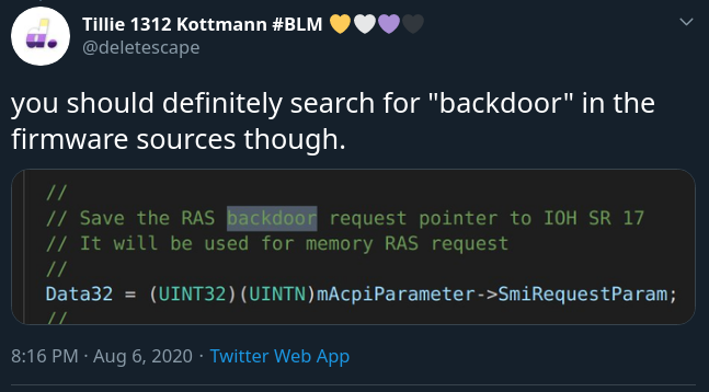 Sáng 07/8, một nhà phát triển có tên Tillie Kottmann đã tiết lộ 20GB dữ liệu vô cùng giá trị, bao gồm mã nguồn và các tài liệu tuyệt mật của hãng chip khổng lồ Intel. Người này cho biết, mình nhận được số dữ liệu từ một hacker ẩn danh và nó bị rò rỉ ra từ một vụ lỗ hổng trong hệ thống Intel.