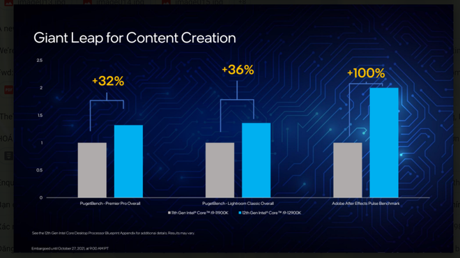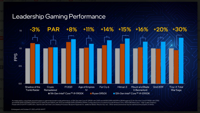 Nhờ kiến trúc hybrid và tiến trình bán dẫn Intel 7 hoàn toàn mới, Intel Core thế hệ thứ 12 nói chung và Core i9-12900K nói riêng đã giành lại ngôi vương cho Intel một cách thuyết phục khi trở thành: