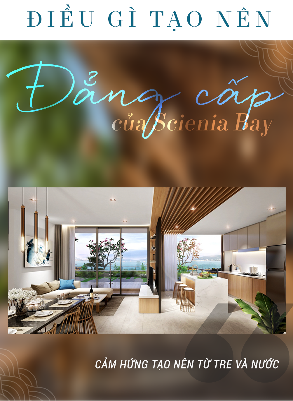 Scenia Bay được thiết kế dựa trên cảm hứng từ cây tre Việt Nam. Với ý tưởng từ tre và nước – sự dẻo dai của hình tượng cây tre, mềm mại và mạnh mẽ của nước, Scenia Bay đã được hình thành. Điểm nhấn mặt đứng của tòa nhà được mô phỏng hình ảnh các đốt tre, biểu tượng truyền thống của Việt Nam, kết hợp nhuần nhuyễn với lối thiết kế Domino chồng xếp phóng khoáng chính là sự đặc biệt mà chủ đầu tư và đơn vị thiết kế tạo nên.