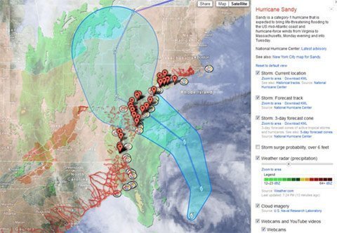 Để giúp người dân có thể chủ động ứng phó, tránh được những thiệt hại gây ra bởi bão Sandy, Google đã cho ra mắt bản đồ giúp người dùng có thể theo dõi được hướng di chuyển của cơn bão này.