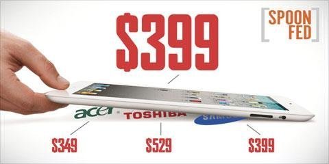 Không giống như Barnes & Noble hay Amazon, Apple đã không bỏ qua bất kỳ tính năng nào để có được mức giá rẻ. Nook Tablet chấp nhận chọn bộ nhớ RAM 512 GB cho bản Nook 8GB thay vì RAM 1GB ở bản Nook 16GB để hạ giá xuống còn 199 USD, trong khi Kindle Fire bỏ qua máy ảnh.