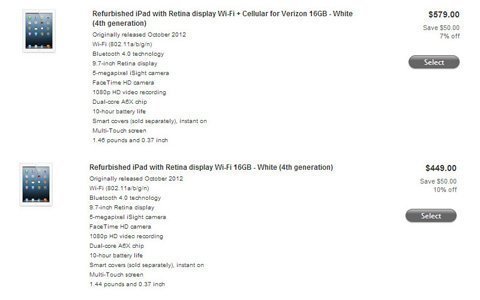 Trang tin công nghệ chuyên đưa tin về Apple 9to5Mac đã chỉ ra cách để người dùng có thể mua các máy Apple đời mới nhất với giá được giảm. Các thiết bị refurbish (máy bị lỗi sau đó được sửa chữa và đóng gói lại, hoặc máy trưng bày ở các showroom được lau chùi rồi bán) của Apple được giảm giá đôi chút: iPad mini 32GB Wi-fi có giá 389 USD, thấp hơn 40 USD so với giá thông thường. iPad 4 Wifi 16GB có giá 449 USD, giảm 50 USD. Phiên bản 4G "refurbish" của iPad 4 cũng chỉ có giá 579 USD.