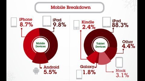 Apple là hãng dẫn đầu về trải nghiệm mua sắm di động khi có tới 88,3% người mua hàng bằng tablet sử dụng iPad, và cùng với nhau, iPhone, iPad đóng góp tới 18,5% tổng số giao dịch mua hàng trực tuyến. Trong ngày Thứ sáu đen, gần 60% người dùng đã sử dụng smartphone và 40% dùng tablet để truy cập vào các website bán lẻ trực tuyến.