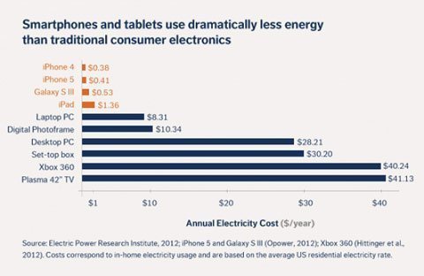 iPhone 4 chỉ tiêu tốn 0,38 USD tiền sạc điện của người dùng trong cả 1 năm. Khi so sánh với các thiết bị khác, Opower cũng cho biết mỗi máy Xbox 360 tiêu tốn trung bình 40,24 USD (~ 800.000 đồng) tiền điện mỗi năm, trong khi 1 chiếc laptop tốn 8,31 USD (~ 166.000 đồng).