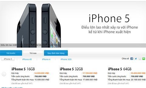 Không chờ đến thời điểm ngày 21/12 khi Apple chính thức phân phối iPhone 5 tại thị trường Việt Nam, nhà mạng trong nước đã công bố giá iPhone 5 chính hãng sẽ dao động từ 15 - 20, 5 triệu đồng tùy theo từng phiên bản (16 - 64GB) và gói cước trả trước hay trả sau.