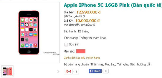 Cùng đó, Viettel cũng vừa áp dụng mức giá bán mới (thực hiện đến ngày 5/8/2014) thấp hơn tới vài triệu đồng so với giá niêm yết cũ: bản 16 GB là 10 triệu đồng (so với mức giá niêm yết 12,99 triệu đồng), bản 32 GB còn 11 triệu đồng (dù giá niêm yết 15,49 triệu đồng).