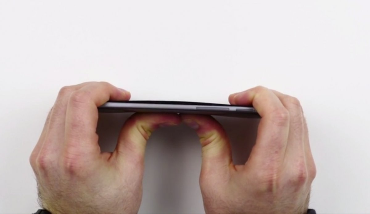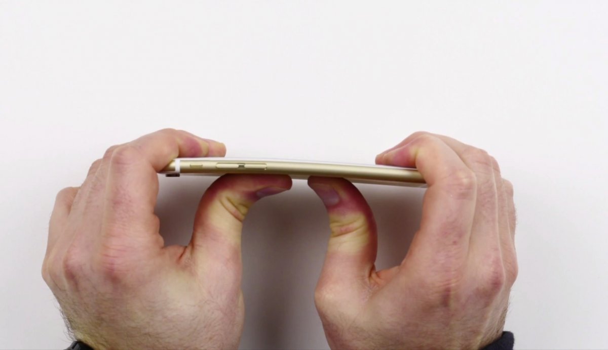 Đầu tiên, họ kiểm tra iPhone 6. Máy cong một chút song không nhiều như iPhone 6 Plus.