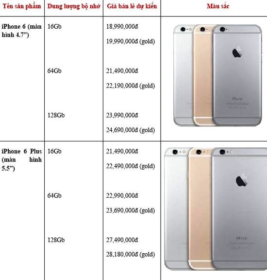 Đáng chú ý trước đó, ngay từ ngày 10/9/2014, sau khi iPhone thế hệ mới vừa được ra mắt tại Mỹ, ông Nguyễn Thế Kha, Phó Giám đốc F.Studio by FPT - chuỗi cửa hàng được ủy quyền chính thức của Apple tại Việt Nam đã cho hay, iPhone 6 và iPhone 6 Plus dự kiến có hàng phân phối chính hãng tại Việt Nam từ cuối tháng 10/2014, giá dự kiến của iPhone 6 16GB từ 18 triệu đồng, còn iPhone 6 Plus từ 20 triệu đồng.