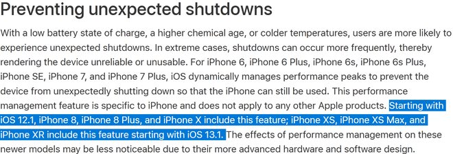 Apple cho biết các mẫu iPhone đời mới có phần cứng sử dụng năng lượng hiệu quả hơn, do vậy sẽ làm giảm đi sự ảnh hưởng của tính năng giảm hiệu suất trên thiết bị. Tuy nhiên, không ít người dùng vẫn cảm thấy không thoải mái khi thiết bị của họ không thể khai thác hết hiệu suất như ban đầu.