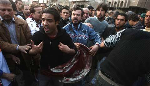 Người dân tập trung tại hiện trường vụ đánh bom phản đối lực lượng an ninh không bảo vệ được người vô tội. (Ảnh: THX)