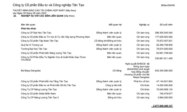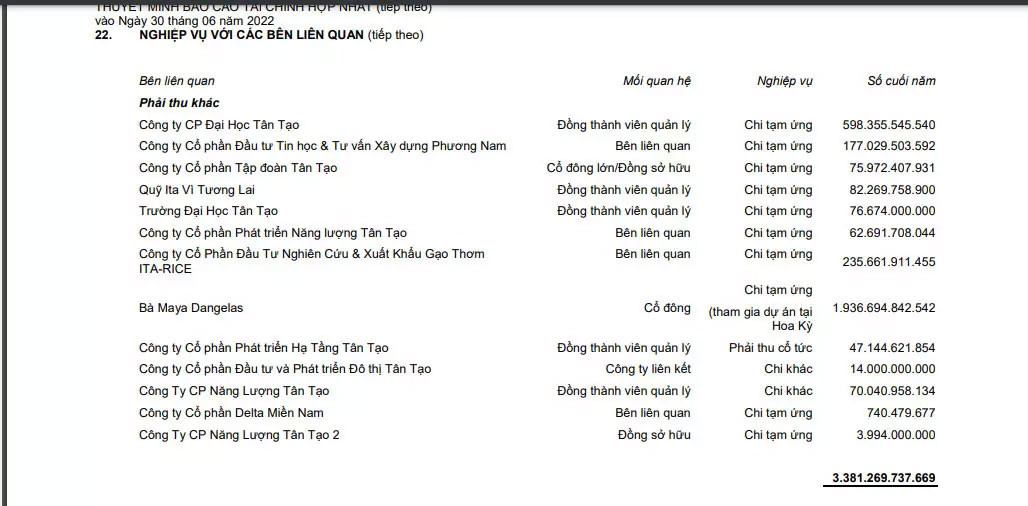 Theo báo cáo tài chính hợp nhất quý II/2022 công bố trước đó, chủ tịch Đặng Thị Hoàng Yến tạm ứng 1.940 tỷ đồng cho việc tham gia dự án tại Mỹ.