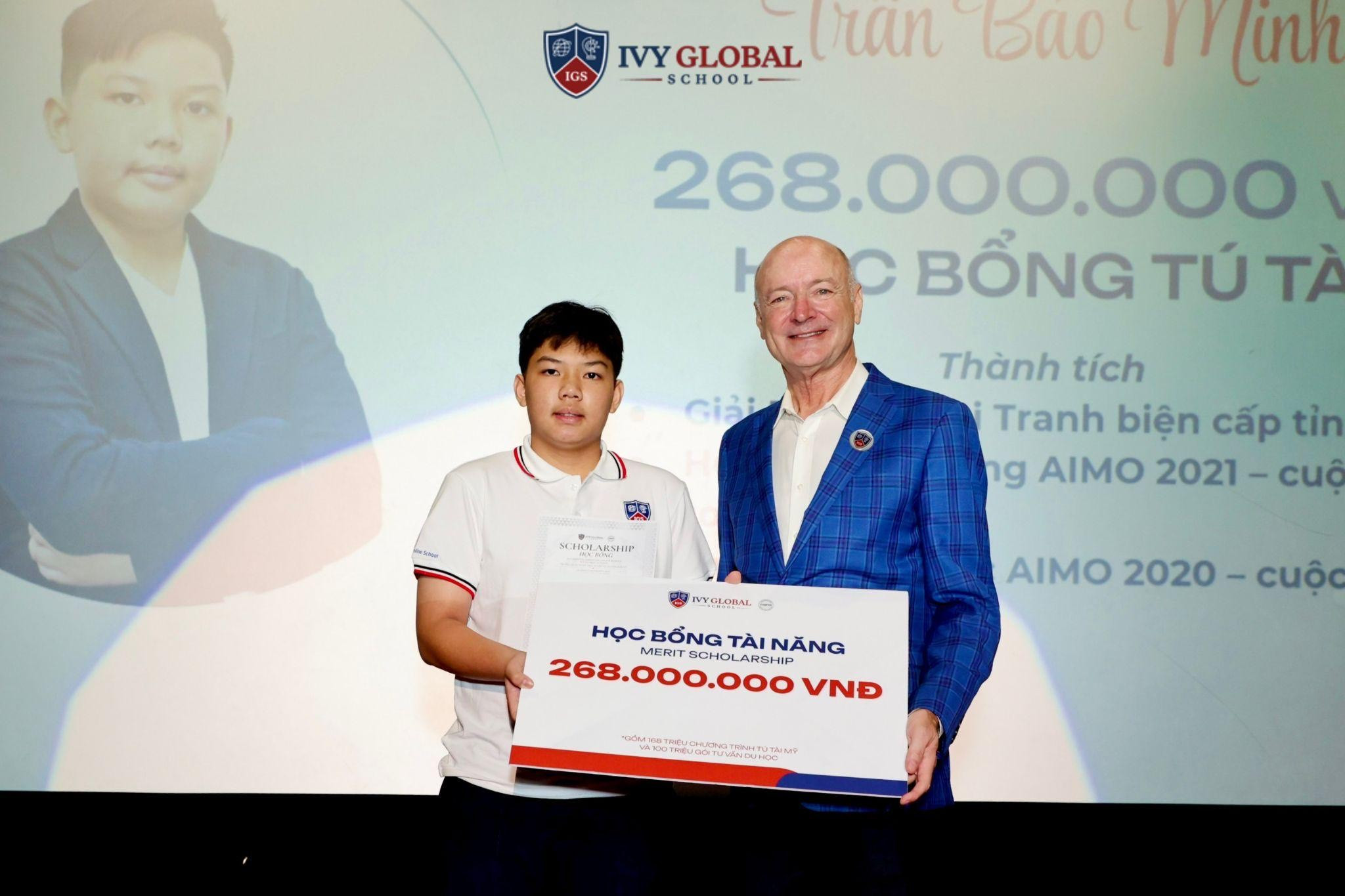 Trong đó, học sinh Trần Bảo Minh đã nhận được suất học bổng kiến tập duy nhất của IGS Talent Search. Bảo Minh sở hữu thành tích bao gồm: Giải Ba cuộc thi Tranh biện cấp tỉnh, Huy chương đồng AIMO 2021 - cuộc thi toán châu Á, Huy chương bạc AIMO 2020... Bảo Minh đang thực hiện dự án mở lớp dạy tiếng Anh cho các bạn nhỏ ở An Giang vào mùa hè này. Chàng trai tài năng mong muốn hoạt động này sẽ là tiền đề mở ra thêm nhiều cơ hội giúp cho học sinh tại các tỉnh mở rộng kiến thức.