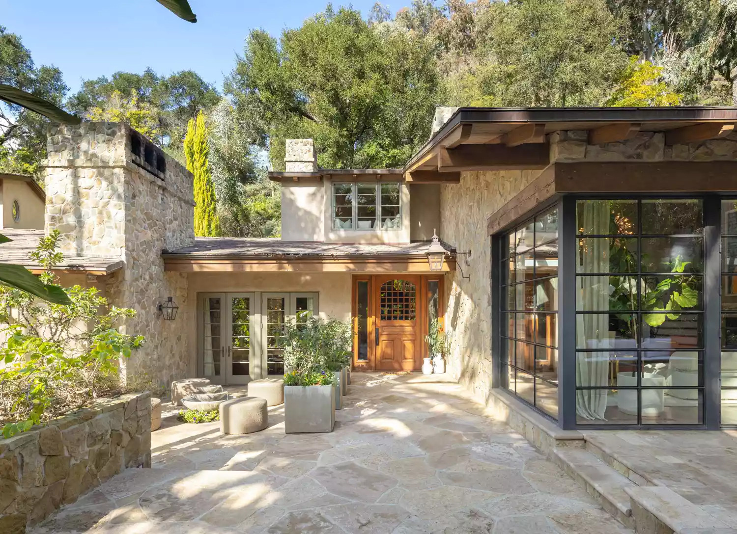 Dinh thự do kiến trúc sư Samuel Marx thiết kế theo kiến trúc miền quê nước Pháp. Vật liệu đá và gỗ tự nhiên được sử dụng, bao quanh là vườn tược cỏ cây và ánh sáng thiên nhiên.
