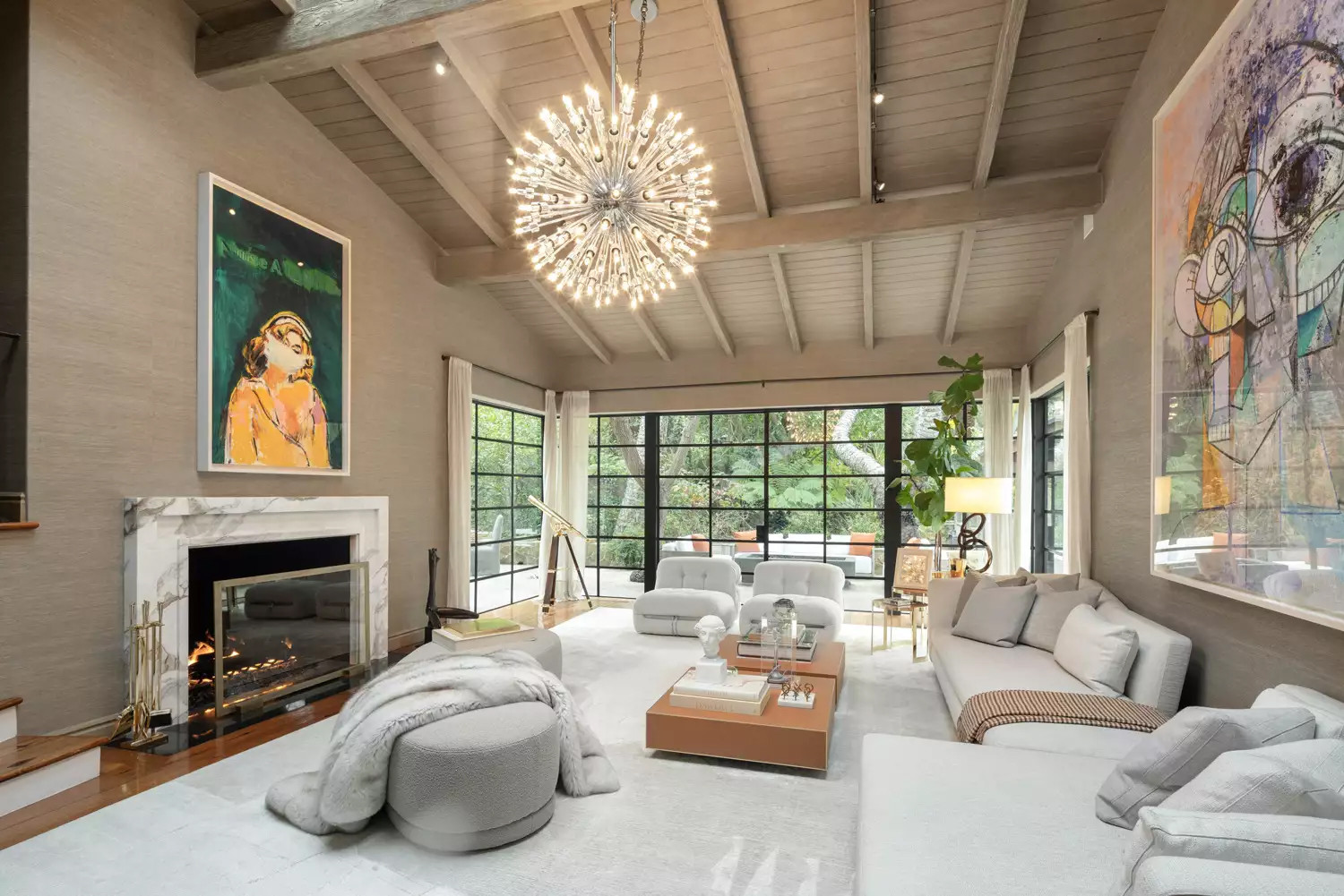 Ngoại trừ phòng chiếu phim, hầu hết các góc trong nhà đều có không gian mở, sử dụng nhiều kính để lấy ánh sáng tự nhiên cũng như thu vào tầm mắt view của khu vườn bên ngoài.