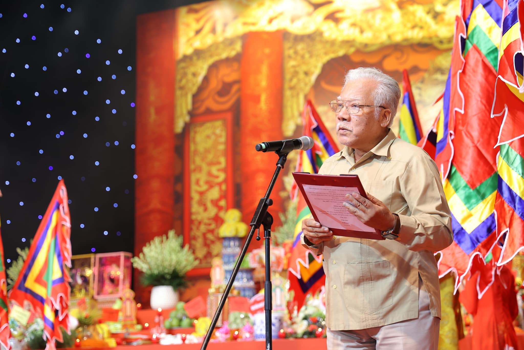 NSƯT Lê Chức đọc chúc văn để bày tỏ lòng biết ơn đến tiên tổ, các bậc tiền nhân đã vượt qua mọi định kiến của xã hội, sáng tạo nên một loại hình nghệ thuật sân khấu độc đáo có giá trị, làm giàu cho bản sắc văn hoá, cũng như để tri ân khán giả đã đồng hành cùng với các văn nghệ sĩ.Nhiều thế hệ nghệ sĩ tới dự lễ giỗ Tổ tại Cung Hữu nghị Việt Xô.Việt Tú, Hoàng Công Cường, Nguyễn Việt Thanh - những đạo diễn dàn dựng rất nhiều chương trình thành công, mang dấu ấn sâu đậm trong lòng công chúng những năm gần đây luôn tự nguyện tổ chức ngày giỗ Tổ nghề sân khấu. Vợ chồng đạo diễn Hoàng Công Cường.Ca sĩ Đông Hùng, nhà thiết kế Đức Hùng tham dự lễ giỗ Tổ.MC Huyền Trang (Mù Tạt) bày tỏ lòng biết ơn tới các vị tiền nhân. Siêu mẫu Hạ Vy cùng nhiều nghệ sĩ khác có cơ hội tề tựu chia sẻ hoạt động về nghề.MC Thuỳ Linh cùng chồng là diễn viên Hiếu Su vui mừng gặp lại các nghệ sĩ họ yêu mến. Các nghệ sĩ bình thường chạy show rất nhiều, chỉ có những dịp như thế này mới có cơ hội hàn huyên. MC Thái Dũng cũng có mặt tại lễ giỗ Tổ nghề sân khấu.Hoa hậu Jennifer Phạm tươi rói tại sự kiện. MC Phí Linh, Thuỳ Linh tíu tít bên nhau.Ca sĩ Hà Lê (ngoài cùng bên trái).Quỳnh Nga - diễn viên nhận mình được Tổ đãi rất nhiều cũng có mặt dâng hương.