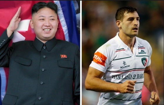 | Nhà lãnh đạo Triều Tiên Kim Kong Un (trái) và ngôi sao bóng bầu dục Anh Jonny May. |
