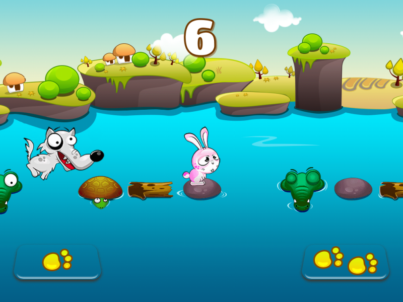 Trong game, bạn sẽ hoá thân thành một chú thỏ bị truy đuổi bởi một chú chó sói ác độc, sẵn sàng chực chờ để ăn thịt mình nếu như bạn chậm chân. Để thoát khỏi chú sói này, người chơi chỉ có một con đường duy nhất là vượt qua một con sông, bằng cách nhảy từng bước một, hoặc là 2 bước, tuỳ vào khoảng cách, để vượt qua lần lượt các khúc gỗ, đầu cá sấu, mai rùa hay các hòn đá ở trên sông.
