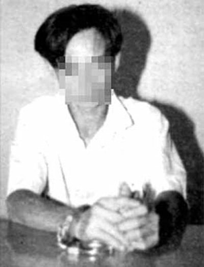 | Khưu Nhân Bông tra tay vào còng và khai nhận sở thích quái đản. |