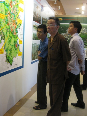 Ông Mai Lý Quảng, nguyên Giám đốc NXB Thế giới là một trong những người đến xem triển lãm sớm nhất cho biết: “Tôi cảm thấy rất hài lòng vì quy hoạch được minh bạch rõ ràng như thế này. Bốn thành phố vệ tinh thì thấy đều được vì đưa lên vùng đồi núi, trung du, nền móng chắc, việc cấp thoát nước thuận lợi hơn. Riêng Phú Xuyên thì tôi hơi băn khoăn 1 chút vì nó chiếm mất quá nhiều ruộng đất trong khi ruộng đất còn ít quá mà ta cứ lấn đất xây dựng. Cũng cần tính đến việc sau này, chúng ta sẽ còn lại gì để làm nông nghiệp nuôi người dân. Đó là an toàn lương thực”.