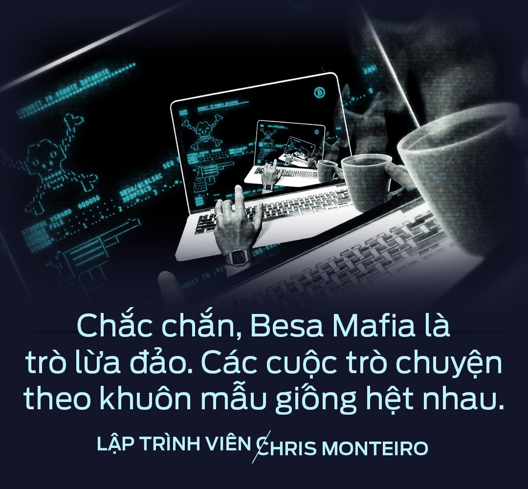 "Chắc chắn, Besa Mafia là trò lừa đảo. Các cuộc trò chuyện theo khuôn mẫu giống hệt nhau", Chris nói. Khách hàng gửi chi tiết về người mà họ muốn giết và phương pháp họ thích.