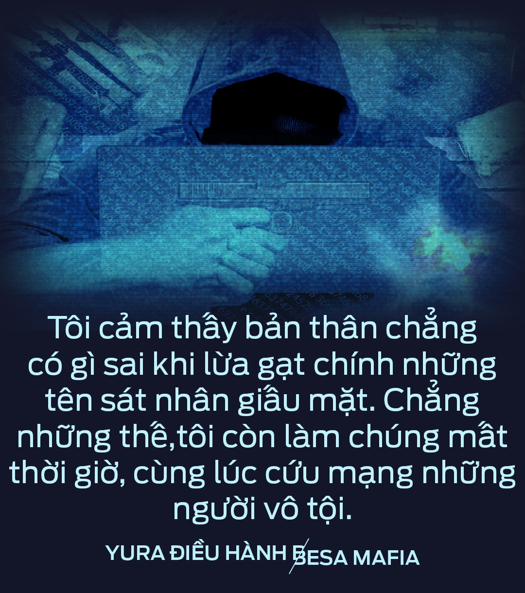 Nhờ thế, trang Besa Mafia đầy rẫy những đoạn clip nhân vật trùm kín mặt như khủng bố và thực hiện các trò bắn tỉa vô nghĩa. Không chỉ vậy, Yura thuê hẳn kỹ thuật viên chuyên quảng cáo cho trang, bất cứ từ khóa nào liên quan đến giết người, thuê giết người, thuê sát thủ đều dẫn về trang của hắn.