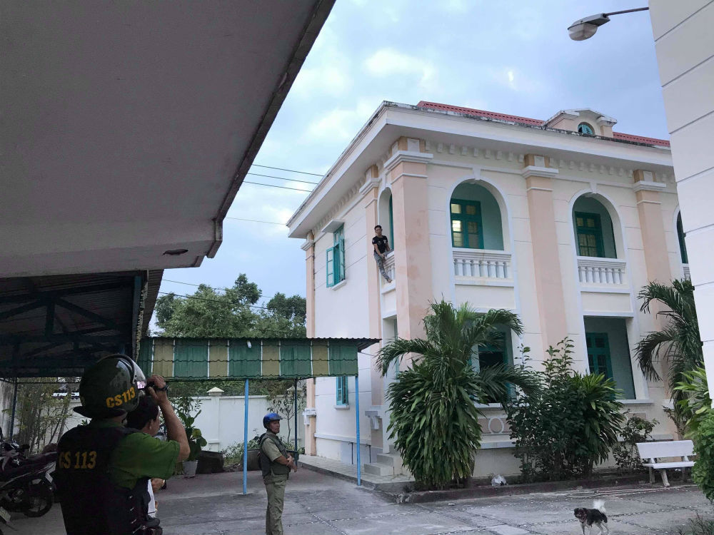 Nam thanh niên đột nhập trụ sở VKSND tỉnh Bình Thuận la hét đòi nhảy từ lầu 2 xuống đất, khiến lực lượng cảnh sát phải tổ chức khống chế.