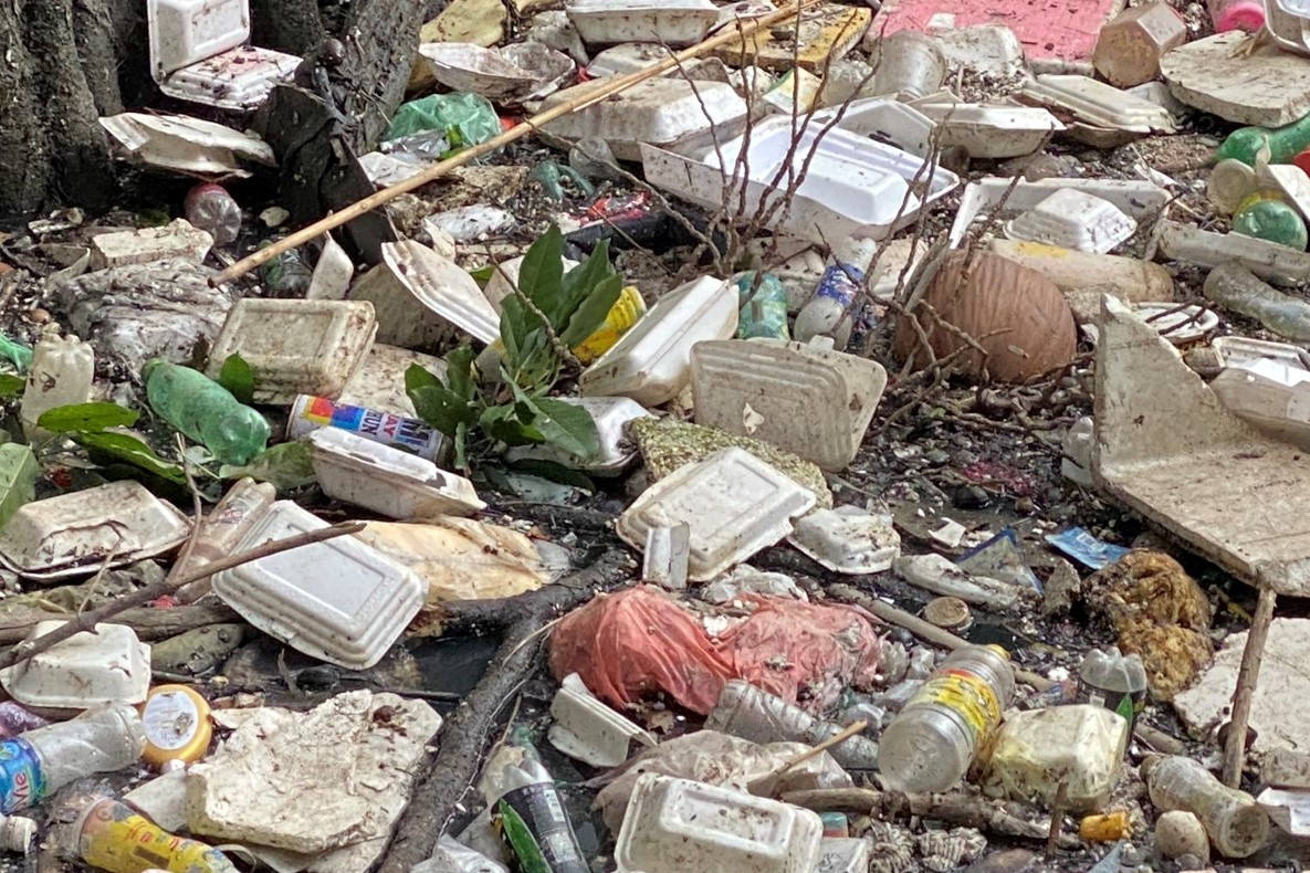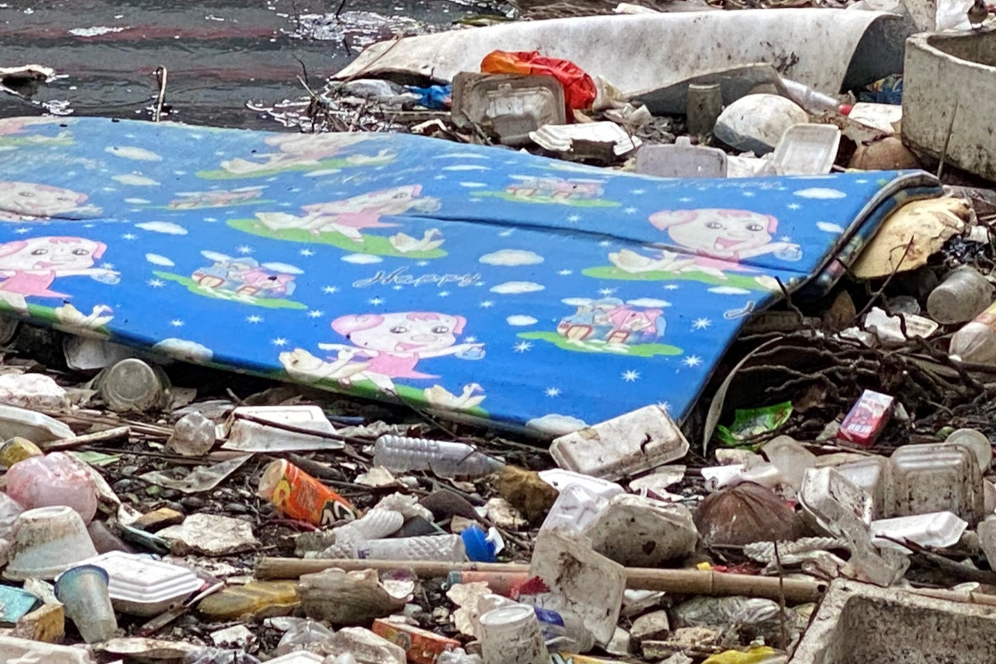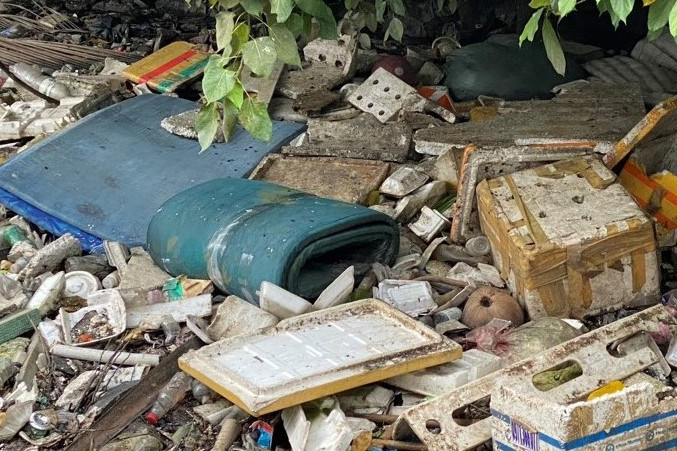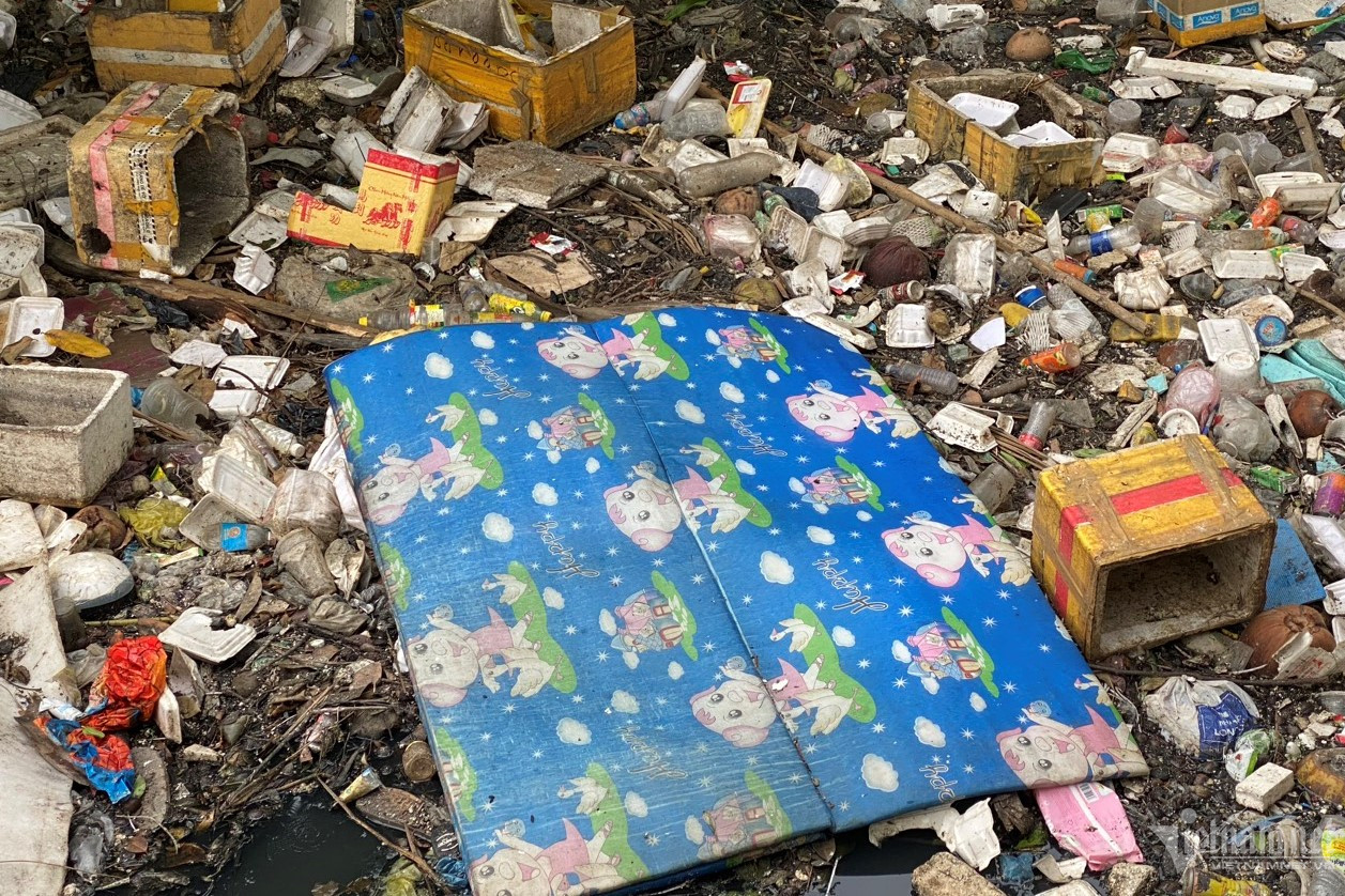 Xen lẫn với túi nilon, chai nhựa, còn có cả những tấm nệm, thùng xốp