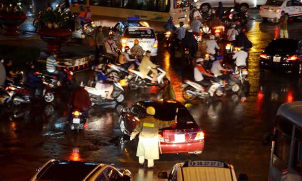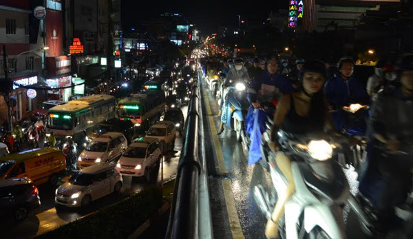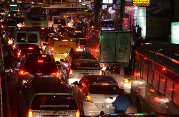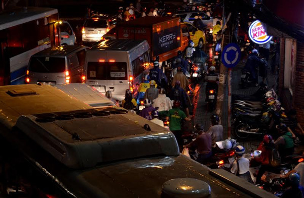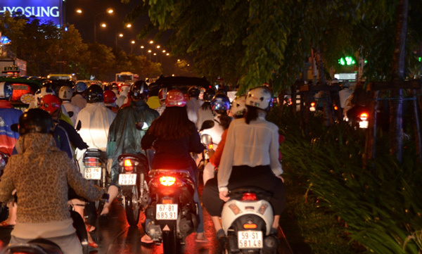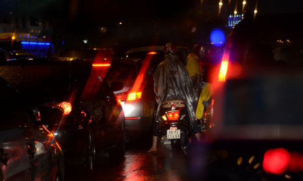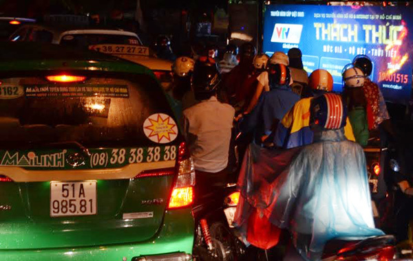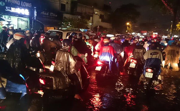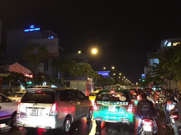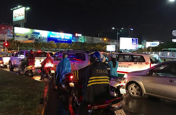 Anh Lê Xuân Ngọc, tài xế taxi Vinasun đón khách ở sân bay Tân Sơn Nhất ngao ngán nói: “Mưa lớn từ chiều gây ngập và kẹt xe khủng khiếp. Tôi chở khách từ Bàu Cát (quận Tân Bình) vào sân bay, chỉ cách khoảng 4-5 km mà phải di chuyển hơn 2 tiếng…Đến 20 giờ, đường vẫn còn kẹt, không dám nhận khách thêm, vì có nhận cũng không chạy được”