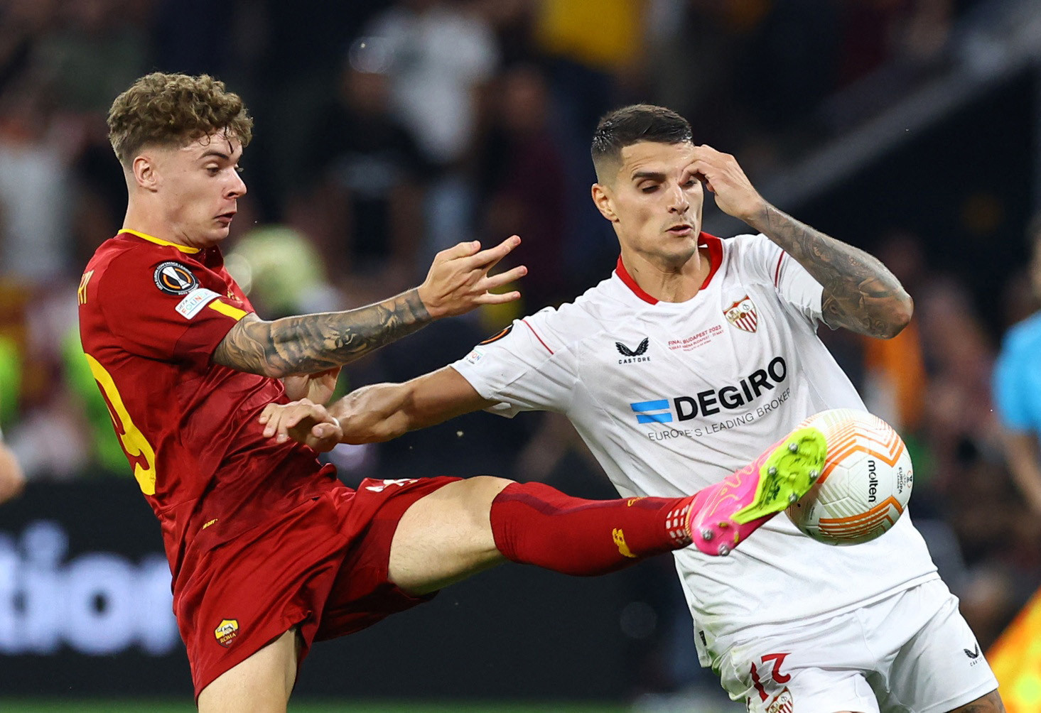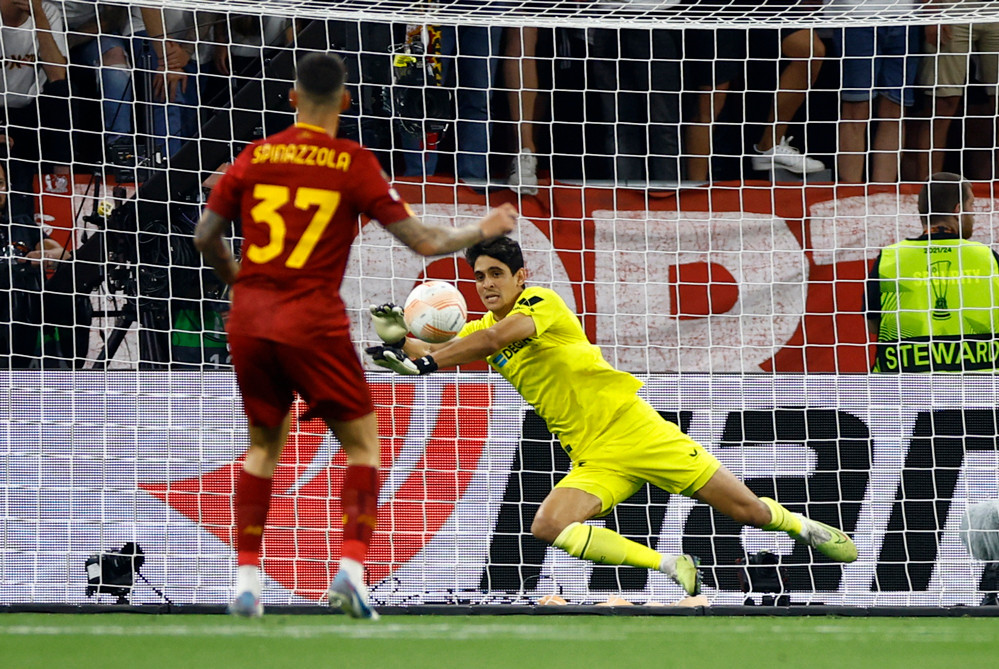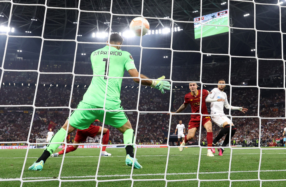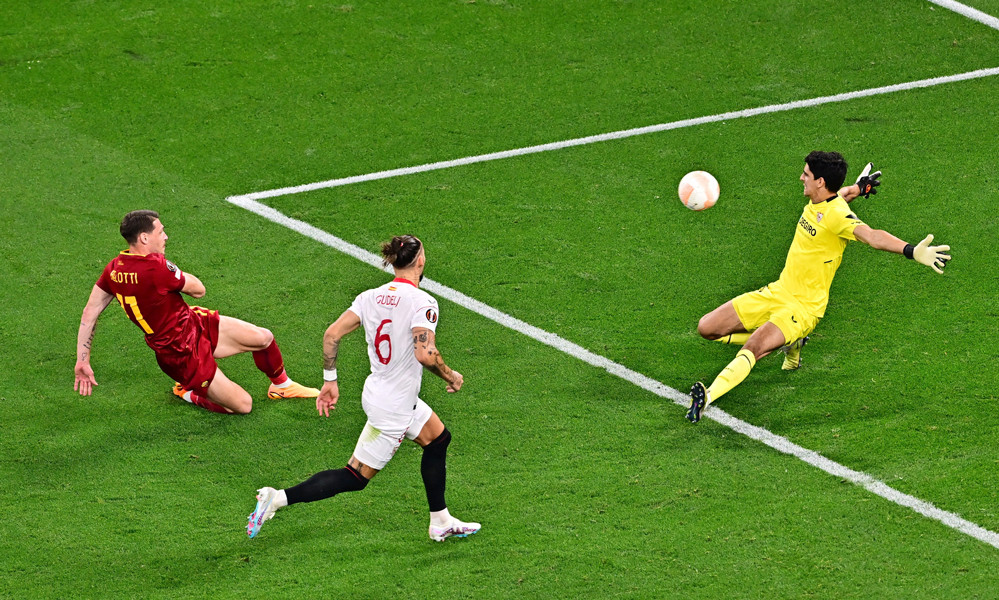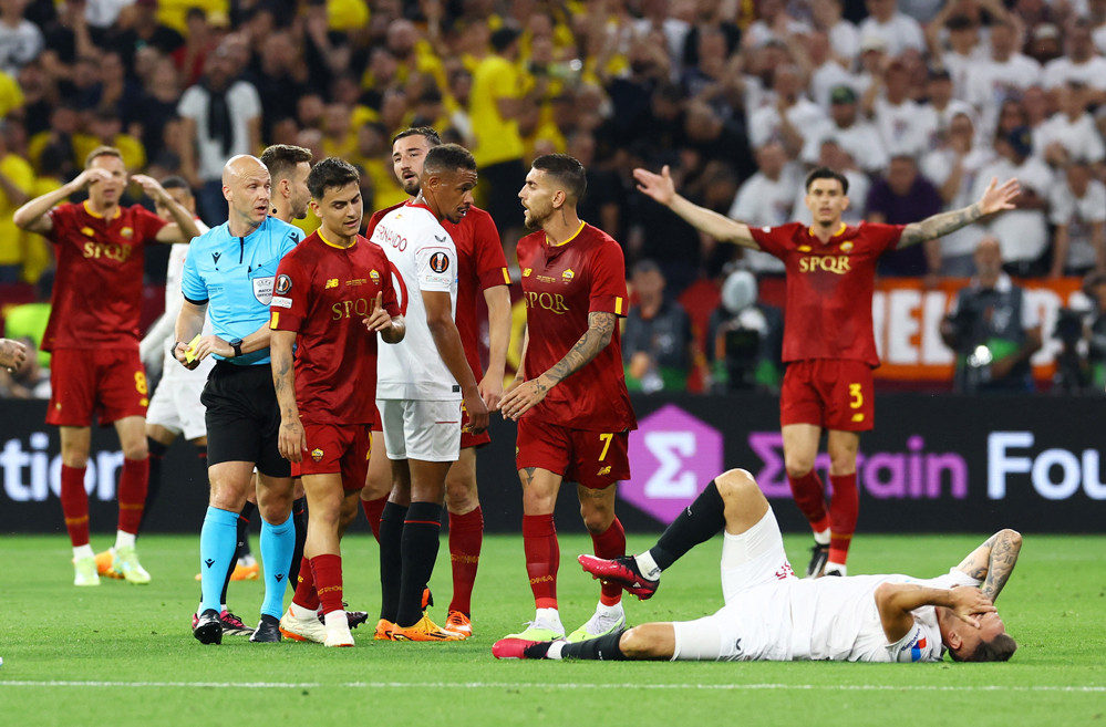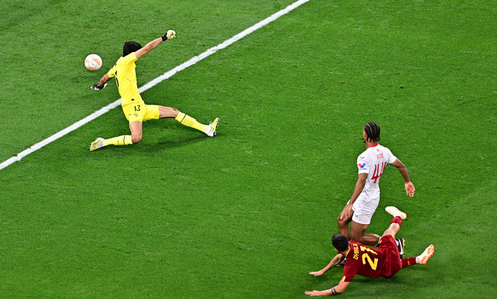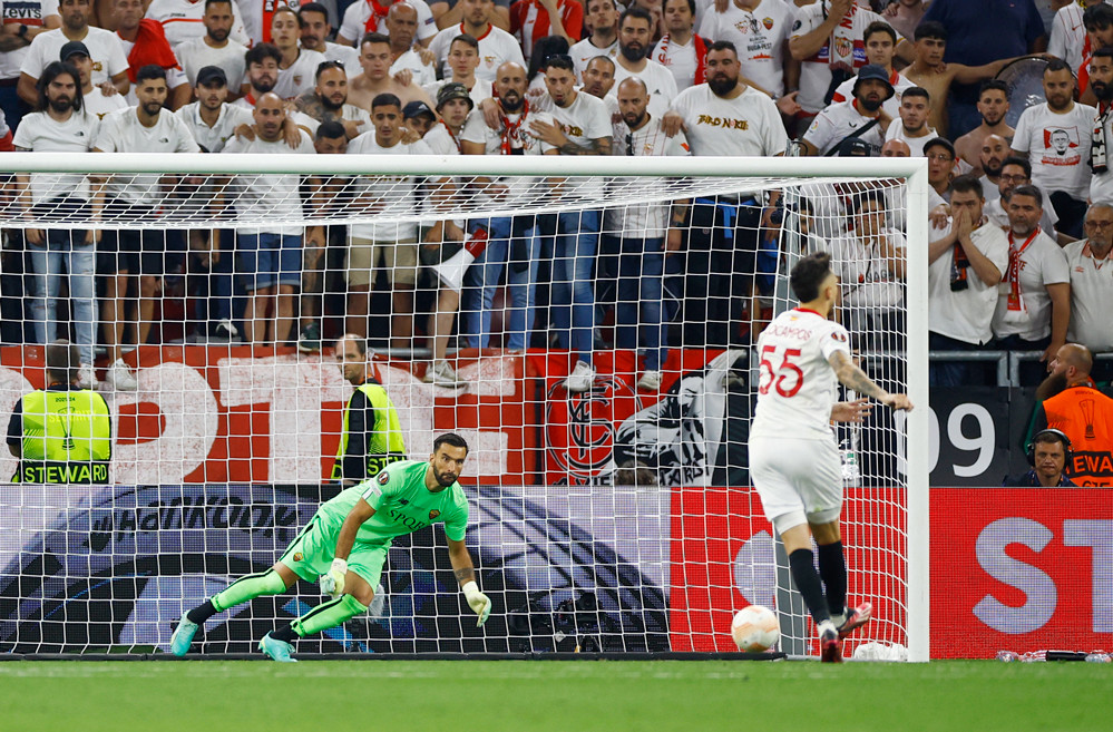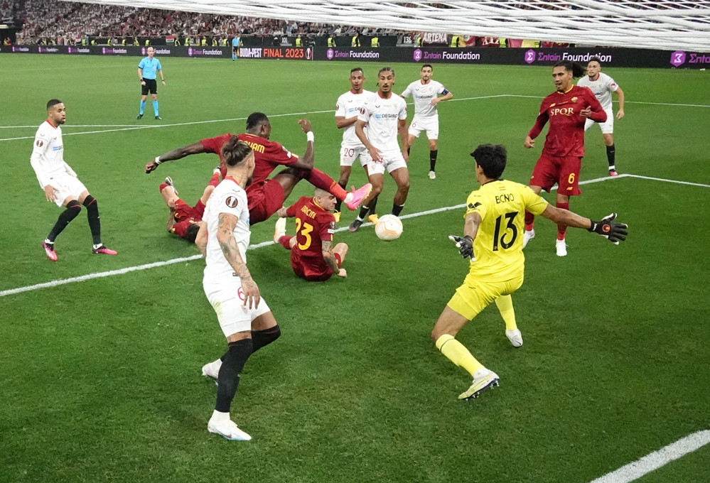Đội hình ra sân của AS RomaĐội bóng Italia nhập cuộc tốt hơn. Spinazzola thử tài Bono với cú đá căng đầu vòng câmTrận đấu diễn ra căng thẳng với nhiều pha vào bóng quyết liệt. Matic nhận thẻ vàng đầu tiên của trận đấu khi chơi xấu OcamposAbahram đòi hưởng phạt đền sau tình huống phá bóng cao chân của hậu vệ Sevilla.Phút 35, Mancini chọc khe thông minh cho Dybala lẻn xuống dứt điểm chân trái hiểm hóc mở tỷ sốTình huống kết thúc quyết đoán của tiền đạo ArgentinaDybala tỏa sáng đúng lúcNhững phút cuối hiệp 1, Sevilla vùng lên mạnh mẽ. Rakitic nã đại bác sấm sét dội cột dọc bật raNgay sau giờ giải lao, Sevilla bất ngờ tìm được bàn gỡ hòa 1-1Navas tạt vào từ cánh phải khiến Mancini lóng ngóng phản lưới nhàNiềm vui của các cầu thủ SevillaThủ thành Bono xuất sắc cứu thua cho SevillaPhút 76, Ocampos ngã trong vòng cấm và Sevilla được hưởng phạt đềnTuy nhiên, sau khi tham khảo VAR, trọng tài Anthony Taylor đã rút lại quyết định của mìnhBelotti bỏ lỡ cơ hội cực kỳ ngon ănHLV Mourinho phản ứng ngoài đường biên90 phút khép lại với tỷ số hòa 1-1 và hai đội phải bước vào thời gian hiệp phụHai đội chơi thận trọng trong hiệp phụ nên trận chung kết cần phải định đoạt trên chấm luân lưu cân nãoTrên chấm 11m, cầu thủ Sevilla dứt điểm đầy tự tinTrái lại, Mancini và Ibanez bên phía Roma lần lượt sút hỏngThủ thành Bono là người hùng của Sevilla khi xuất sắc cản được 2 quả penaltyMontiel đá quả luân lưu quyết định đem về chiếc cúp Europa League thứ 7 cho SevillaGiây phút vỡ òa của Jordan cùng các đồng độiNiềm vui vô bờ bến của những nhà vô địch Sevilla