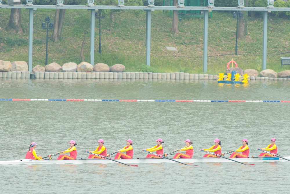 Nhóm các VĐV Đinh Thị Hảo, Hà Thị Vui, Hô Thị Lý, Lê Thị Hiền, Nguyễn Lâm Kiều Diễm, Trần Thị Kiệt, Phạm Thị Ngọc Anh, Phạm Thị Huệ, Dư Thị Bông về đích thứ 3 nội dung thuyền 8 nữ với thành tích 6 phút 48 giây 21, qua đó giành thêm tấm HCĐ. Các tay chèo Trung Quốc giành HCV và HCB thuộc về đội Nhật Bản.