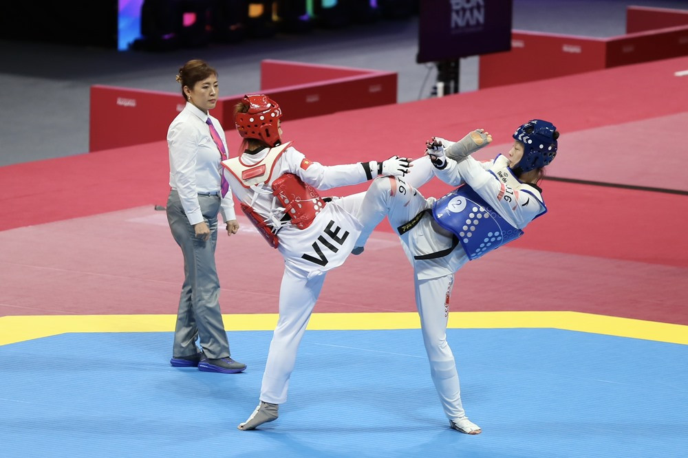 Các VĐV Bạc Thị Khiêm, Phạm Ngọc Châm, Lý Hồng Phúc và Phạm Minh Bảo Kha vượt qua đối thủ Philippines ở tứ kết nội dung quyền đồng đội nam nữ. Đối thủ ở vào bán kết là các võ sĩ chủ nhà Trung Quốc và Taekwondo Việt Nam chắc chắn có thêm tấm HCĐ.