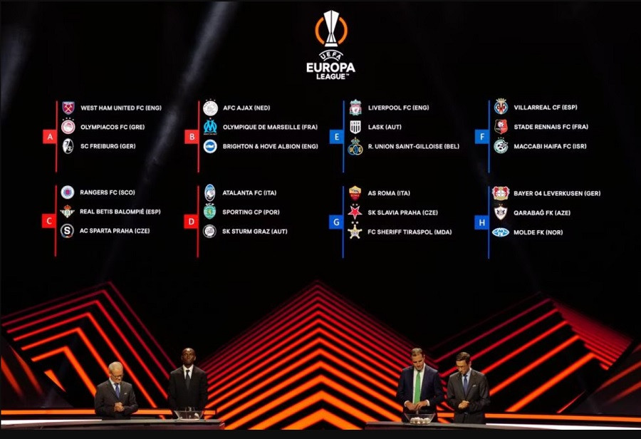 Brighton nằm ở bảng C, cùng Ajax (Hà Lan), Marseille (Pháp) và AEK Athens (Hy Lạp); West Ham rơi vào bảng A, cùng Olympiacos (Hy Lạp), Freiburg (Đức) và Backa Topola (Serbia).