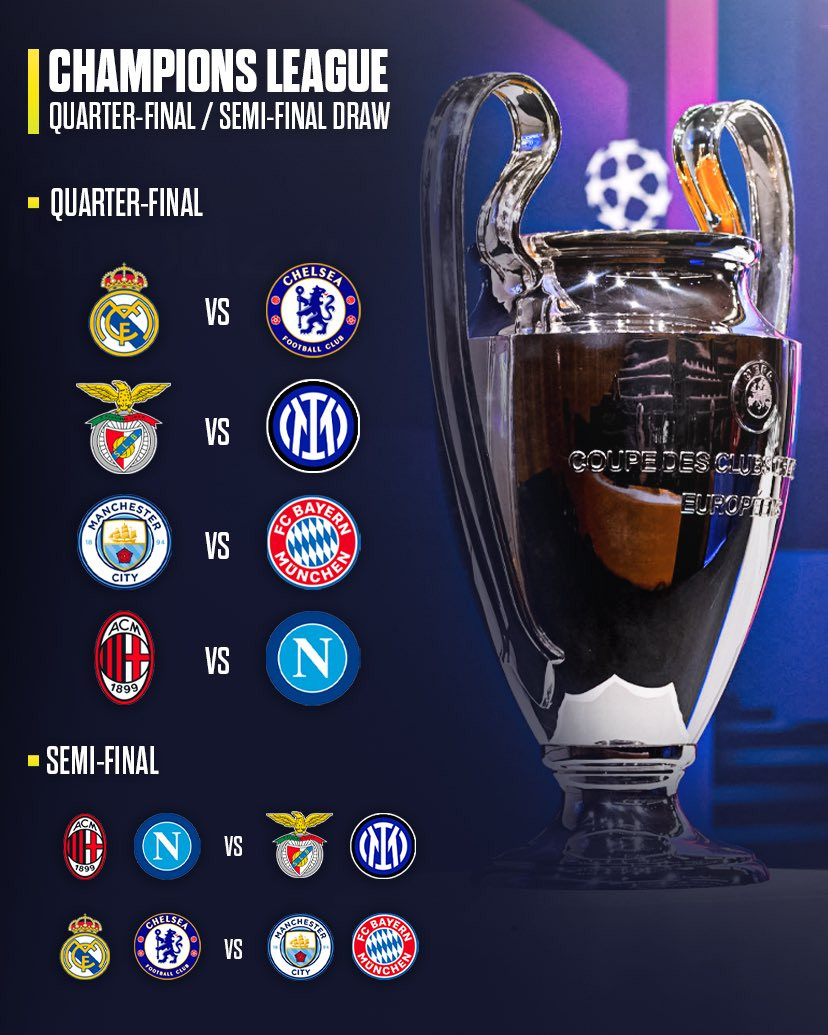 Cặp bán kết 2: Tứ kết 1 (Real Madrid vs Chelsea) vs Tứ kết 3 (Man City vs Bayern Munich