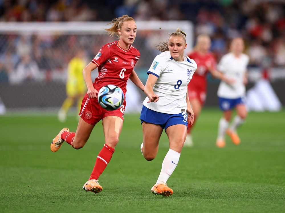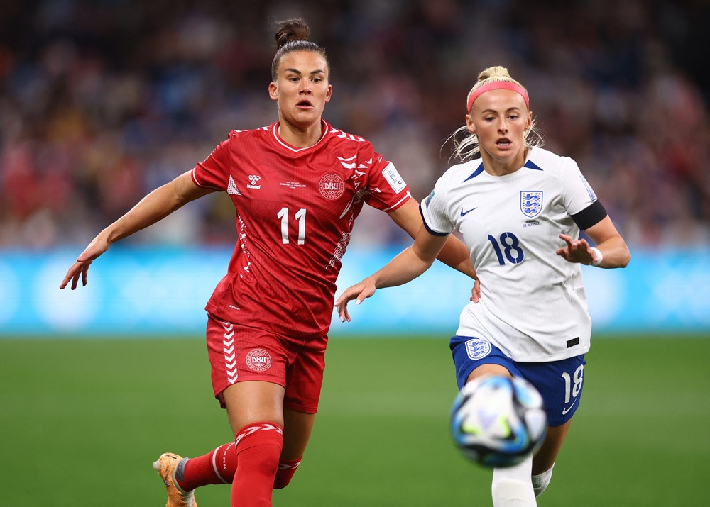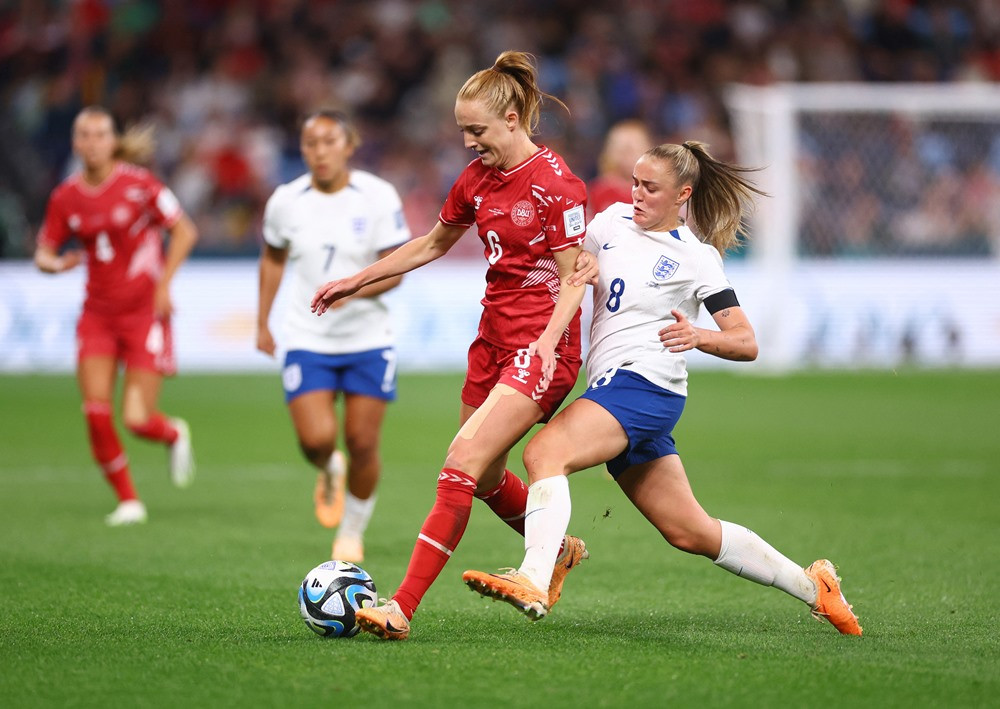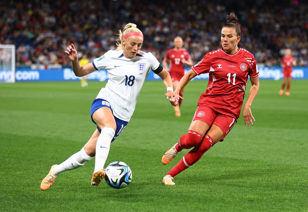 Tuyển nữ Anh vẫn kiểm soát tốt thế trận, không cho Đan Mạch nhiều cơ hội lên bóng.