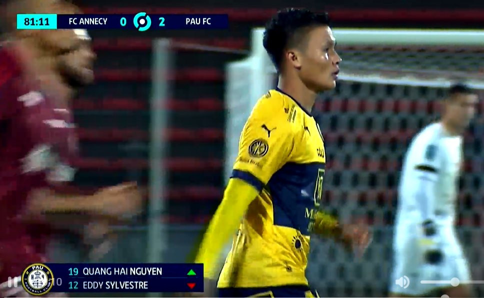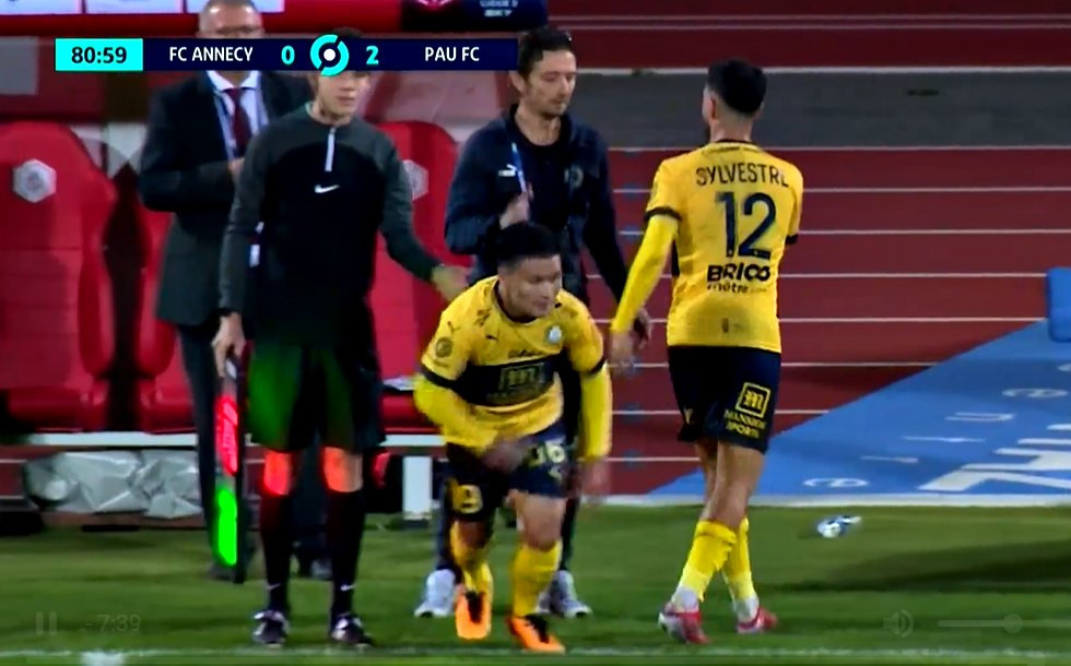 Quang Hải bị phạm lỗi từ giữa sân nhưng trọng tài không thổi phạt, Annecy vì vậy có pha tấn công nguy hiểm suýt chút nữa mang về bàn gỡ.