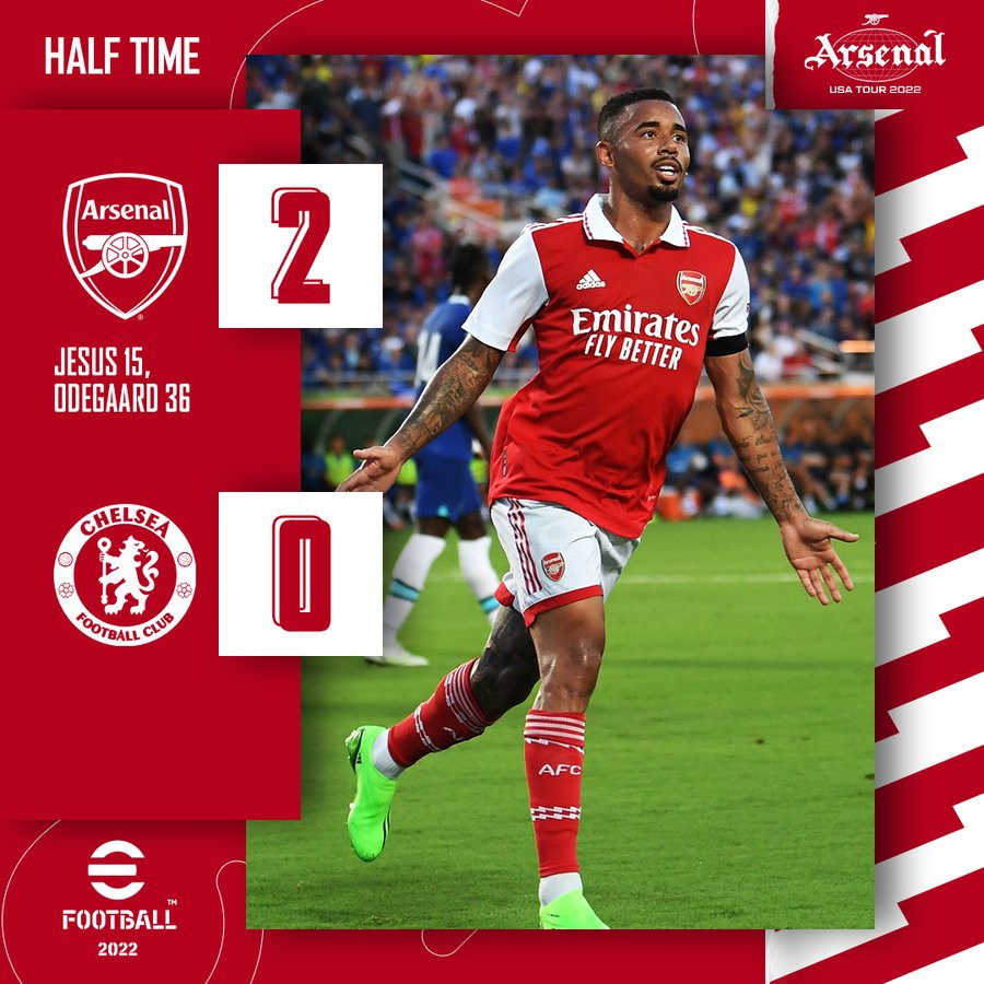 Bàn thắng (2-0, Martin Odegaard): Martin Odegaard xâm nhập vòng cấm đón đường chuyền của Martinelli. Tiền vệ người Na Uy sút chìm bằng chân trái nâng tỷ số lên 2-0.