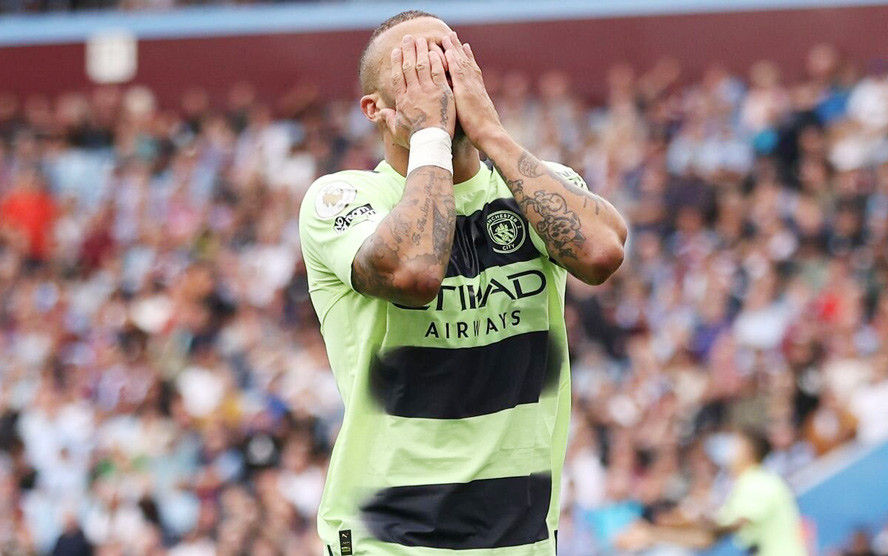 Man City áp đảo ngay từ đầu. Sau pha phối hợp trung lộ, Kyle Walker xâm nhập vòng cấm trống trải nhưng lại sút căng vọt xà.